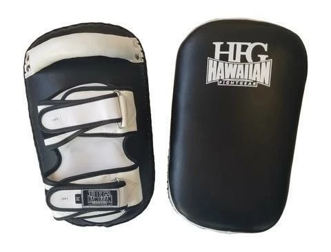 HFG “Deluxe Curved Punch” Thai Pad featured in tough and rugged full grain thick leather cover with triple stitched seams. More than 4″ of multi-layered impact absorbing foam pads and filling for the pinnacle in impact resistance, superior shock-absorbing capabilities and superb protection from all kicks, strikes and punches. Large palm grip with riveted security and two leather hook-and-loop velcro security straps on back for firm and secure fit. Hawaiian Fight Gear Thai Pads are the very finest quality kickpads available in the worldwide market!