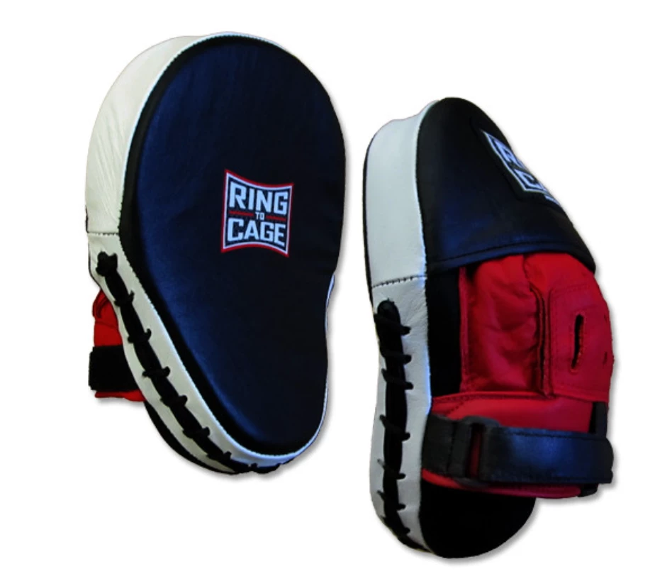 ‘Snug fit’ hand compartment with a thickly padded leather wrist strap anchors the mitts to your hands , Soft contoured palm surface for better grip and a comfortable poly/nylon lining for quick drying. This curved punch mitts come with added feature of velcro leather strap over wrist area for snug fit.
